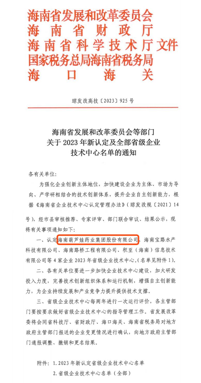 近日,海南省发改委等多部门联合公布了《关于2023年新认定及全部省级企业技术中心名单的通知》,其中,海南恒峰g22药业集团股份有限公司成功通过评审,被认定为省级企业技术中心,是本次获批的4家企业之一。